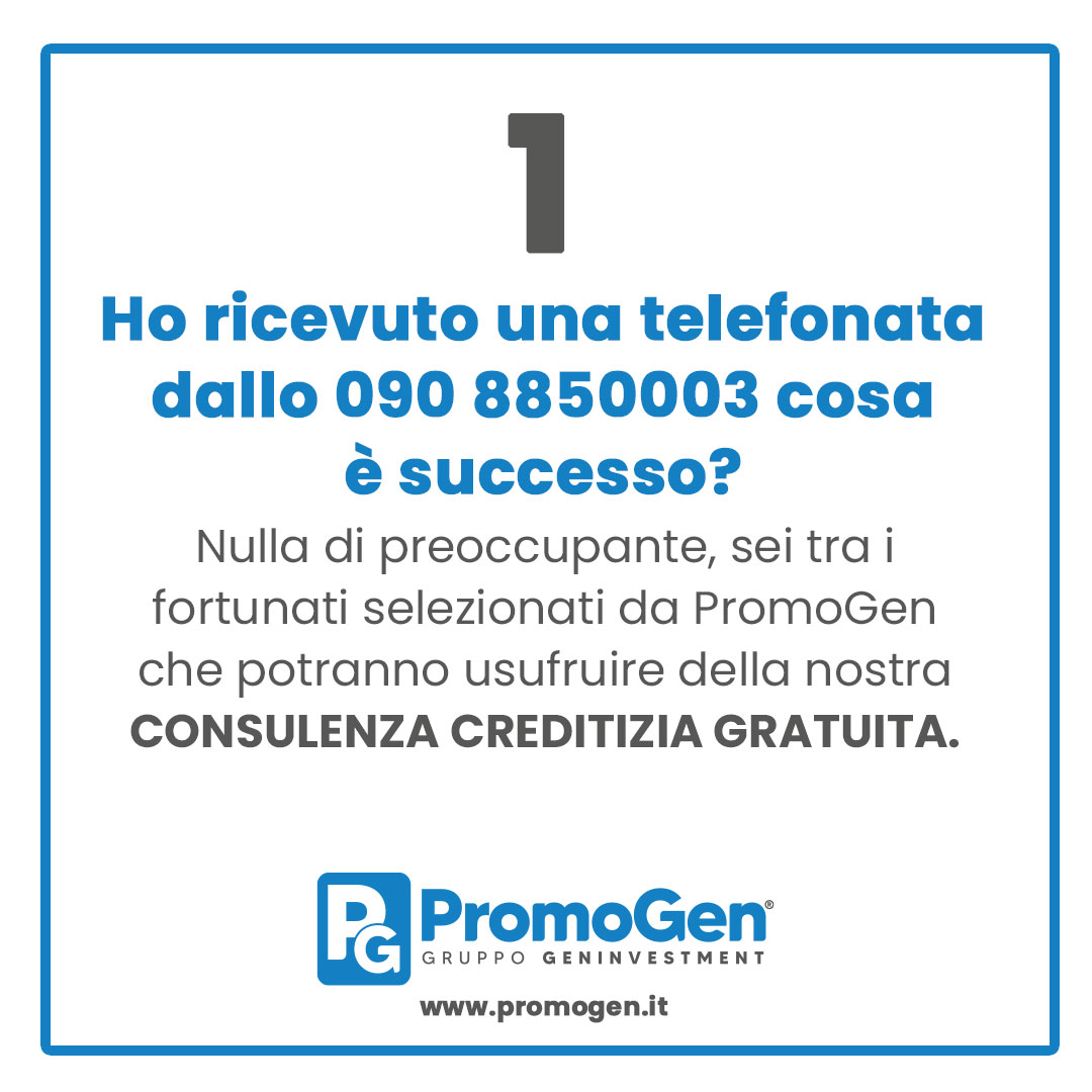 Hai ricevuto una telefonata dal numero 0908850003? Congratulazioni, sei tra i fortunati selezionati da PromoGen: potrai godere in modo gratuito e personalizzato, della nostra consulenza creditizia!