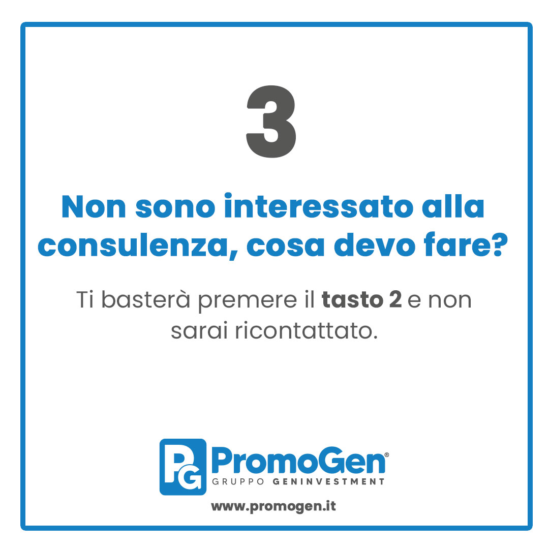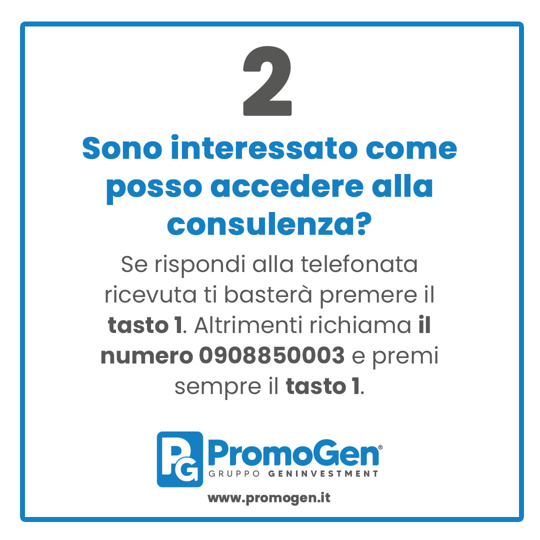 A partire dal mese di Giugno PromoGen mette a disposizione la propria competenza per una selezionata clientela che ti consentirà di conoscere il tuo status finanziario, senza alcun vincolo, usufruendo di una consulenza gratuita e personalizzata.